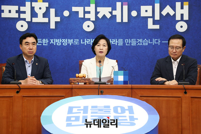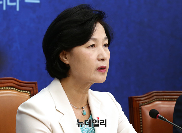 추미애 더불어민주당 대표가 20일 오전 국회에서 열린 최고위원회의에서 모두발언을 하고 있다.