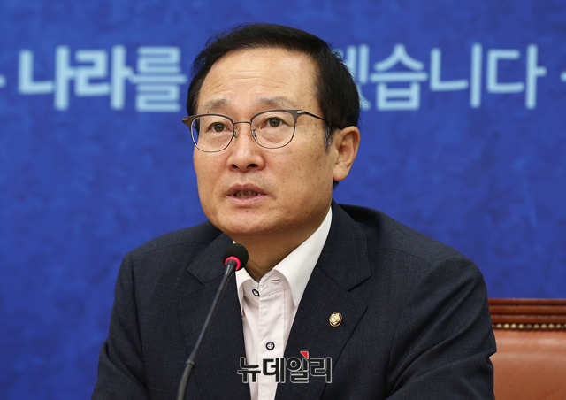홍영표 더불어민주당 원내대표가 20일 오전 국회에서 열린 최고위원회의에서 모두발언을 하고 있다.