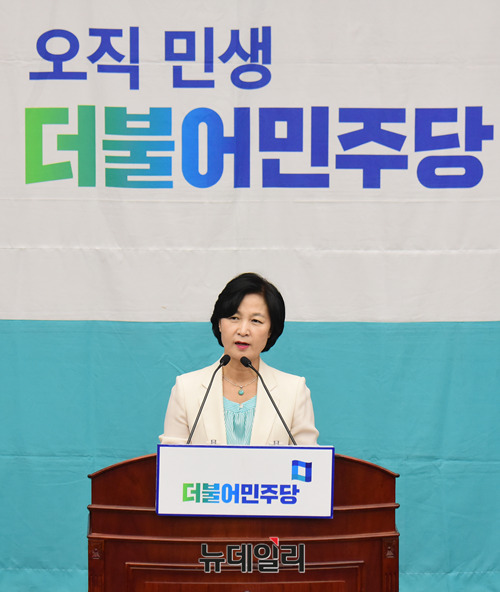 추미애 더불어민주당 대표가 20일 오후 국회에서 열린 의원총회에서 모두발언을 하고 있다.