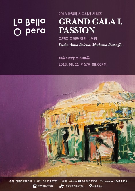 라벨라오페라단(단장 이강호)이 오페라 대중화를 목표로 3회에 걸쳐 2018 라벨라 시그니처 시리즈를 선보인다.첫 번째 '그랜드 오페라 갈라 I. PASSION 격정'은 8월 21일 오후 8시 예술의전당 콘서트홀에서 개최된다. '격정'을 주제로 '람메르무어 루치아, '안나 볼레나', '나비 부인'의 여주인공을 중심으로 한 불멸의 핏빛 아리아를 들려준다.'람메르무어 루치아'는 '스코틀랜드판 로미오와 줄리엣'으로 원수 가문의 아들 에드가르도와 사랑에 빠진 루치아의 사랑 이야기이다. 소프라노 한은혜·홍선진, 테너 이상준·김중일·김성천, 바리톤 최병혁, 베이스 양석진이 출연한다.'안나 볼레나'는 '천일의 앤', '천일의 스캔들'의 이름으로도 영화화된 오페라이다. 영국의 번영을 이룬 엘리자베스 1세의 친엄마이자 영국 헨리8세의 두 번째 부인이기도 한 안나 볼레나의 피맺힌 사랑 이야기를 다룬다.