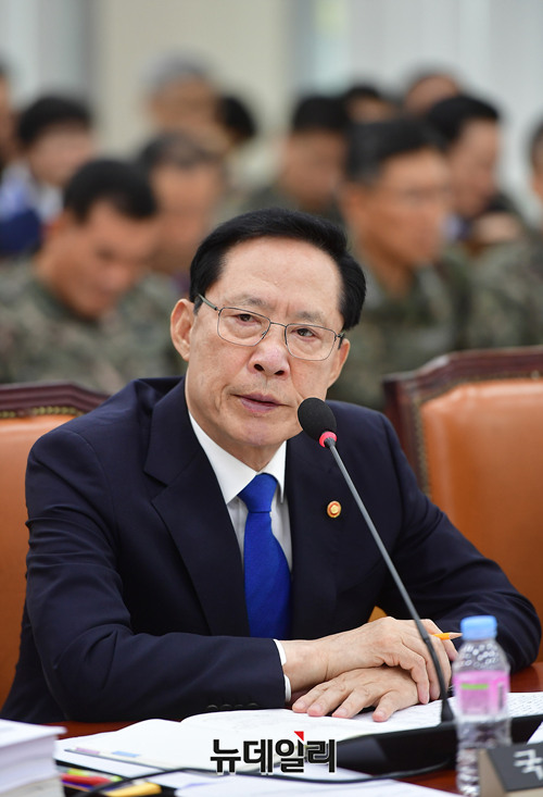 송영무 국방부 장관이 21일 오전 국회 국방위원회 회의에 참석해 발언하고 있다.
