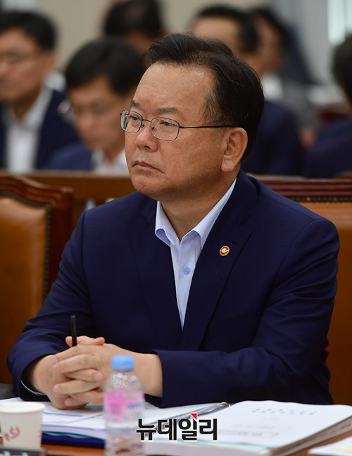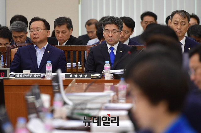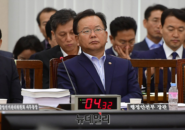 김부겸 행정안전부 장관이 21일 오전 국회 행정안전위원회 회의에 참석해 자리하고 있다.