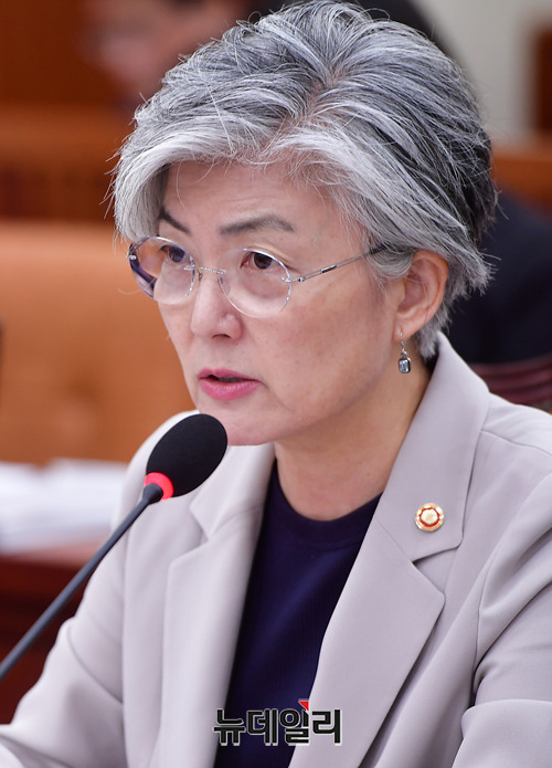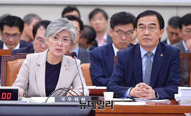 강경화 외교부 장관이 21일 오전 국회 외교통일위원회 회의에서 발언하고 있다.