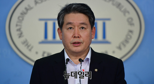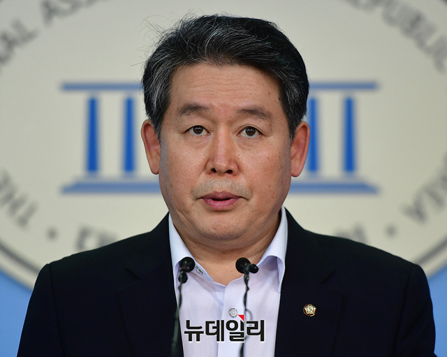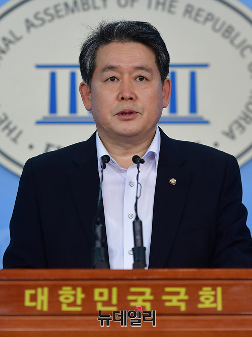 김경협 더불어민주당 의원이 21일 오전 정론관에서 기자회견을 열고 통일경제특구와 관련한 채널A의 보도와 관련해 왜곡보도라고 주장하며 정정보도와 사과를 요구했다.
