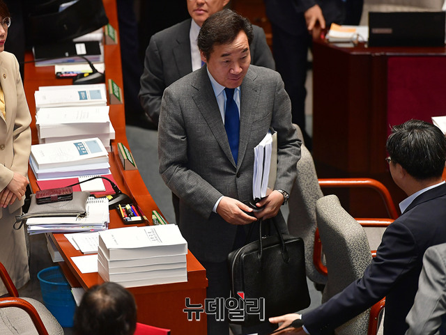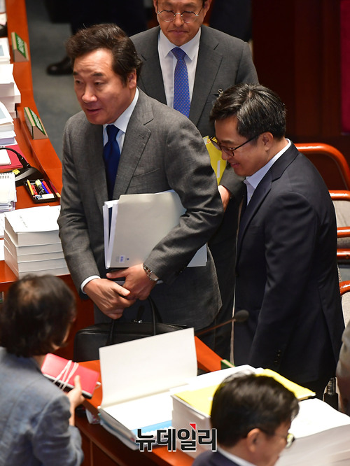 [포토] 국회 예결위 회의장 나서는 이낙연-김동연