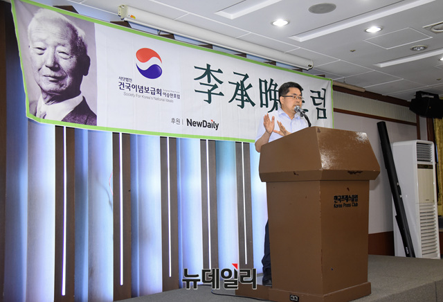 오영섭 연세대 이승만연구원 연구 교수가 21일 오후 서울 중구 한국프레스센터에서 열린 제90차 이승만포럼에 발표자로 나서 '이승만의 한학 수련과 한시 세계'를 주제로 발표하고 있다.