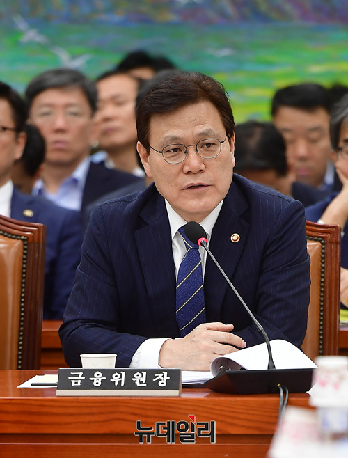 최종구 금융위원장이 21일 오전 국회 정무위원회에 참석해 발언하고 있다.
