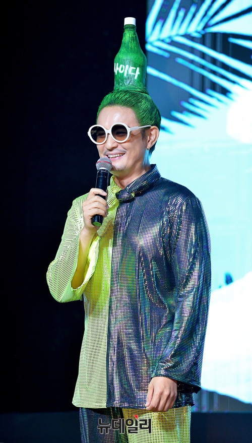 가수 노라조(Norazo : 조빈, 원흠) 조빈이 21일 오후 서울 마포구 하나투어 브이홀에서 열린 신곡 '사이다(CIDER)' 발매 기념 쇼케이스에 참석해 인사말을 하고 있다.