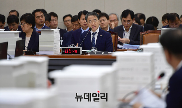 박능후 보건복지부 장관이 21일 오전 국회 보건복지위원회 회의에 참석해 발언하고 있다.