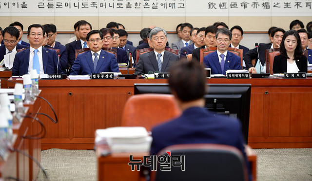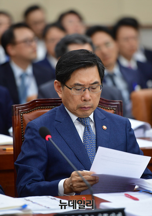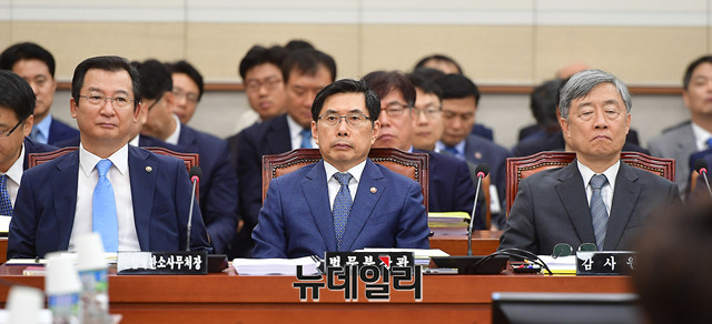 박상기 법무부 장관이 22일 오전 국회 법제사법위원회 회의에 참석해 자리하고 있다.