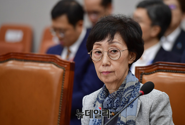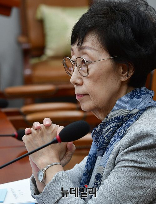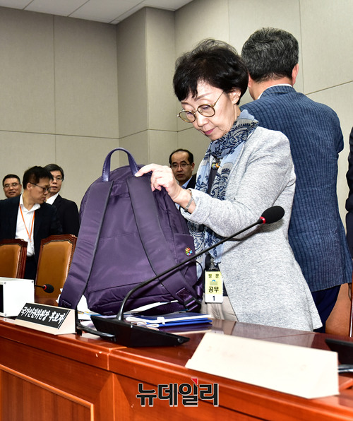 최영애 국가인권위원회 위원장 후보자가 23일 오전 국회 운영위원회 회의실에서 열린 인사청문회에 참석해 자리하고 있다. 이날 최 후보자의 인사청문회는 태풍 '솔릭'의 한반도 상륙 여파에 오는 28일로 연기됐다.