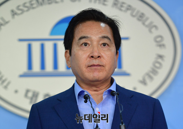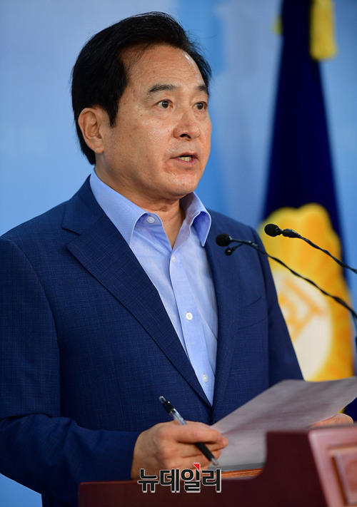 심재철 자유한국당 의원이 23일 오전 국회 정론관에서 북한산 석탄과 관련해 기자회견을 갖고 있다.