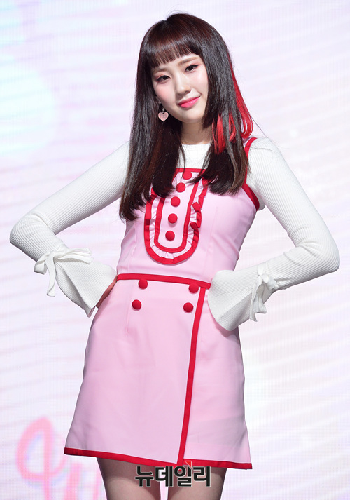 그룹 샤샤(SHA SHA : 아렴, 고운, 서연, 하경, 챠키, 완린) 하경이 23일 오후 서울 마포구 하나투어 브이홀에서 열린 두 번째 싱글 '왓더헥(WHAT THE HECK)' 발매 기념 쇼케이스에 참석해 포즈를 취하고 있다.