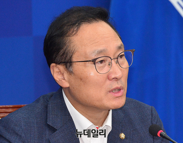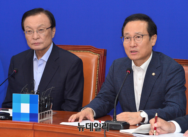 홍영표 더불어민주당 원내대표가 27일 오전 국회에서 열린 최고위원회의에 참석해 모두발언 하고 있다.
