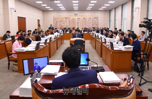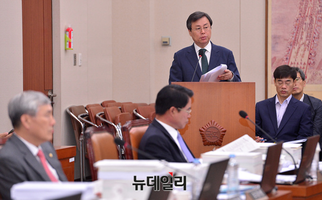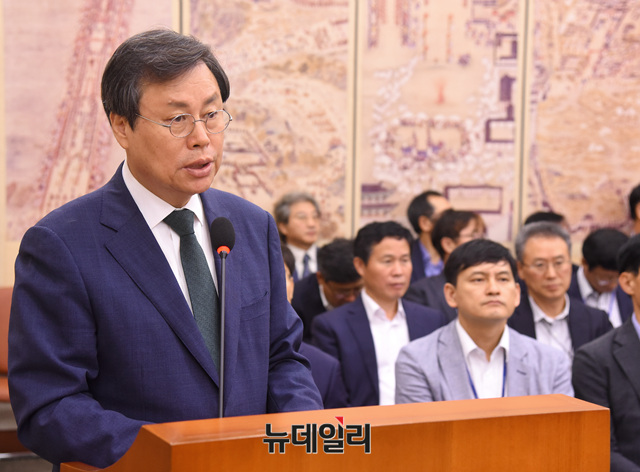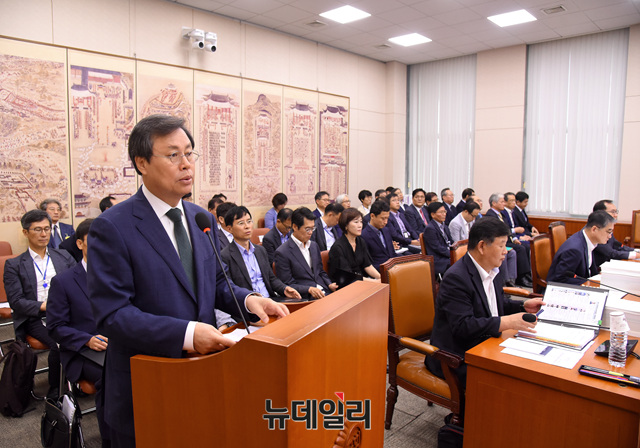 도종환 문화체육관광부 장관이 27일 오전 국회에서 열린 국회 문화체육관광위원회 전체회의에 참석해 업무보고를 하고 있다.