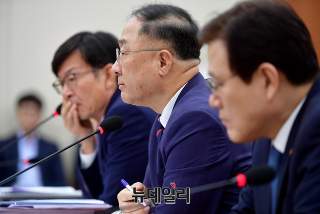 김진태 자유한국당 의원이 27일 국회 정무위원회 회의에서 홍남기 국무조정실장에게 청와대 일자리상황판과 관련해 질의하고 있다.