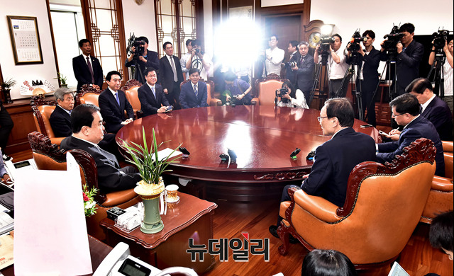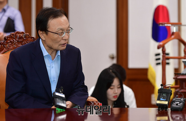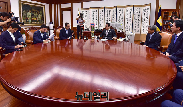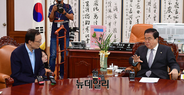 이해찬 더불어민주당 신임 당대표가 27일 오전 국회의장실을 찾아 문희상 국회의장과 대화를 나누고 있다.