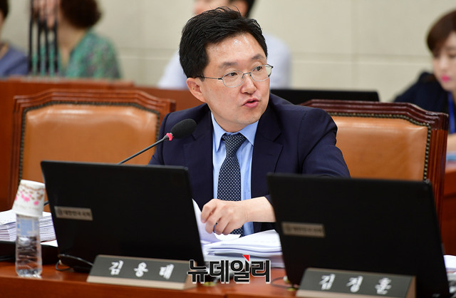 김용태 자유한국당 의원이 27일 오전 국회 정무위원회 회의에서 질의를 하고 있다.