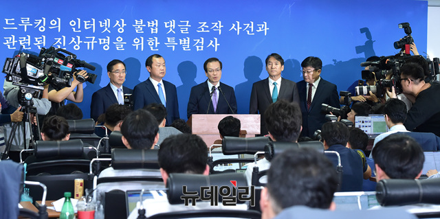 허익범 '드루킹 댓글 조작 사건' 진상규명을 위한 특별검사가 27일 오후 서울 서초구 특별검사 사무실에서 60일간의 수사 결과를 발표하고 있다.