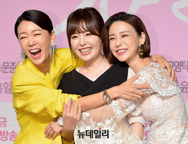 드라마 '차달래 부인의 사랑'의 배우들(하희라, 안선영, 고은미)이 28일 오후 서울 영등포구 그랜드컨벤션센터에서 열린 제작발표회에 참석해 포즈를 취하고 있다.