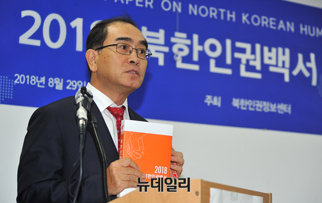 [포토] 2018 북한인권백서 소개하는 태영호 전 공사
