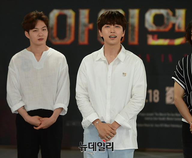 B1A4 산들이 29일 오후 서울 강남구 광림아트센터에서 열린 뮤지컬 '아이언 마스크' 연습실 공개행사에서 인사말을 하고 있다. 뮤지컬 '아이언 마스크'는 오는 9월 13일 부터 11월 18일까지 광림아트센터 BBCH홀에서 공연된다.
