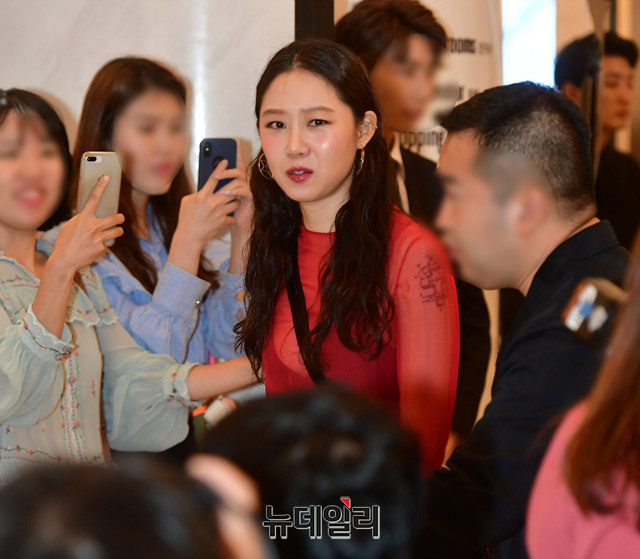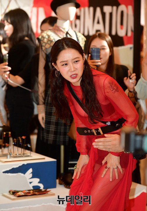 배우 공효진이 29일 오후 서울 송파구 롯데월드몰 디올 매장에서 열린 팝업스토어 오픈 기념 행사에 고개를 숙이며 입장하고 있다.