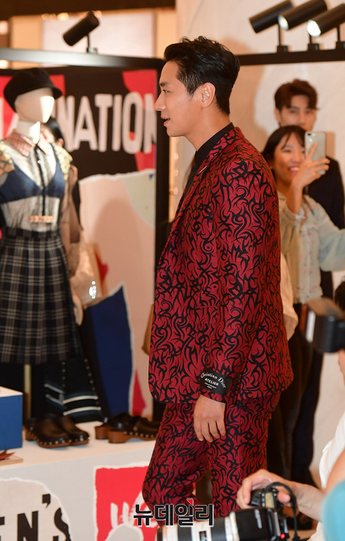 배우 주지훈이 29일 오후 서울 송파구 롯데월드몰 디올 매장에서 열린 팝업스토어 오픈 기념 행사에 입장하고 있다.