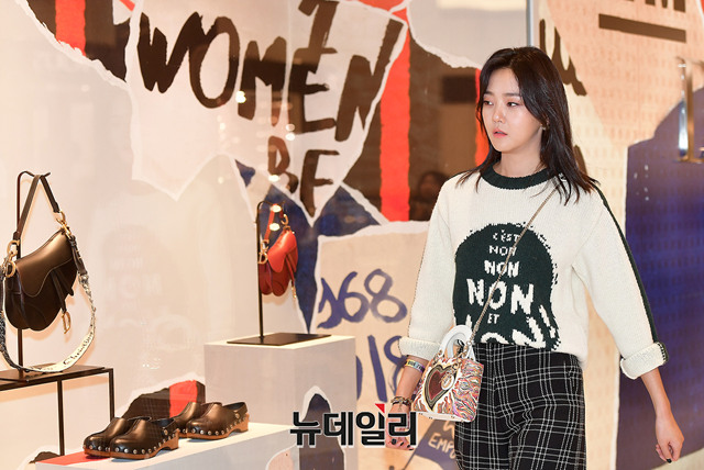 모델 강승현이 29일 오후 서울 송파구 롯데월드몰 디올 매장에서 열린 팝업스토어 오픈 기념 행사에 참석해 포토타임을 갖고 있다.