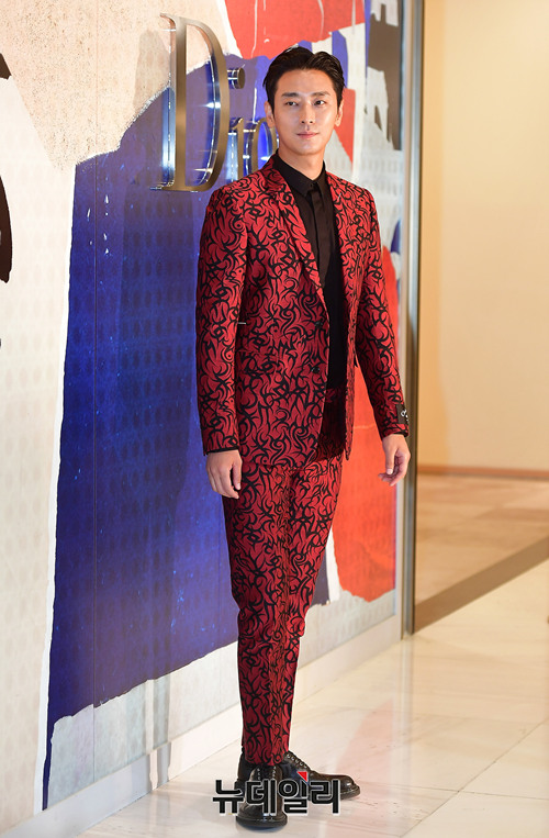 배우 주지훈이 29일 오후 서울 송파구 롯데월드몰 디올 매장에서 열린 팝업스토어 오픈 기념 행사에 참석해 포토타임을 갖고 있다.