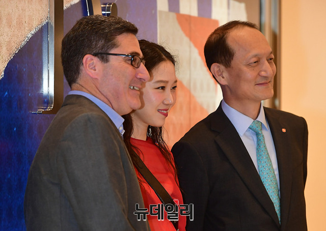 데이비드 레이몬드 디올코리아 사장, 배우 공효진, 정동혁 롯데백화점 본부장(왼쪽부터)이 29일 오후 서울 송파구 롯데월드몰 디올 매장에서 열린 팝업스토어 오픈 기념 행사에 참석해 포토타임을 갖고 있다.