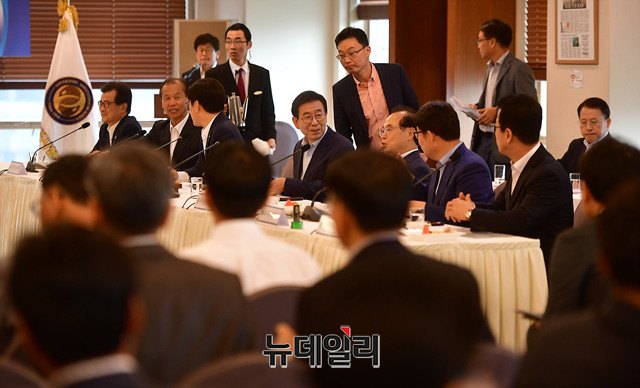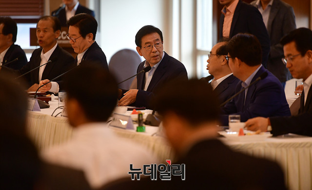 박원순 서울시장이 30일 오전 서울 중구 한국프레스센터에서 열린 시도지사협의회 임시총회에서 모두 발언을 하고 있다. 이날 총회는 비공개로 진행됐다.