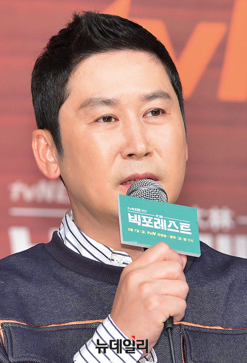 개그맨 신동엽이 30일 오전 서울 영등포구 타임스퀘어에서 열린 드라마 '빅포레스트' 제작발표회에 참석해 인사말을 하고 있다. 신동엽은 폭망한 연예인 신동엽 역을 맡았다.