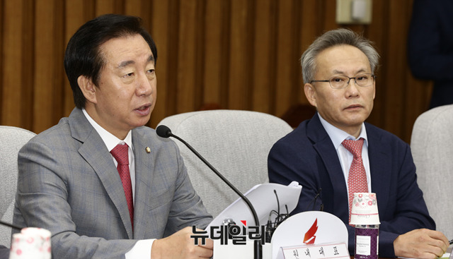 [포토] 소득주도성장정책폐기 촉구 간담회, 발언하는 김성태