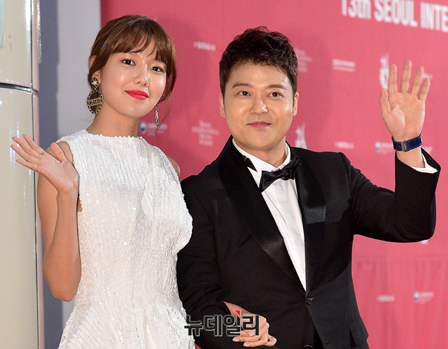 가수 수영과 방송인 전현무가 3일 오후 서울 여의도 KBS홀에서 열린 '서울드라마어워즈 2018' 레드카펫 행사에 참석해 포즈를 취하고 있다.