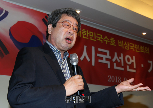 조동근 명지대학교 경제학과 교수가 4일 오전 서울 중구 달개비에서 열린 대한민국수호 비상국민회의 '시국선언 기자회견'에 참석해 발언하고 있다.