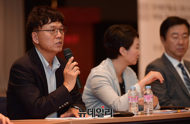 이병태 카이스트 경영대학 교수가 4일 오후 서울 여의도 중소기업중앙회관에서 '2018년 대한민국의 중소기업! 미래는 있는가?'를 주제로 한 '제1차 중소기업 생존 원탁회의'에서 참석해 소상공인의 질의를 듣고 있다.