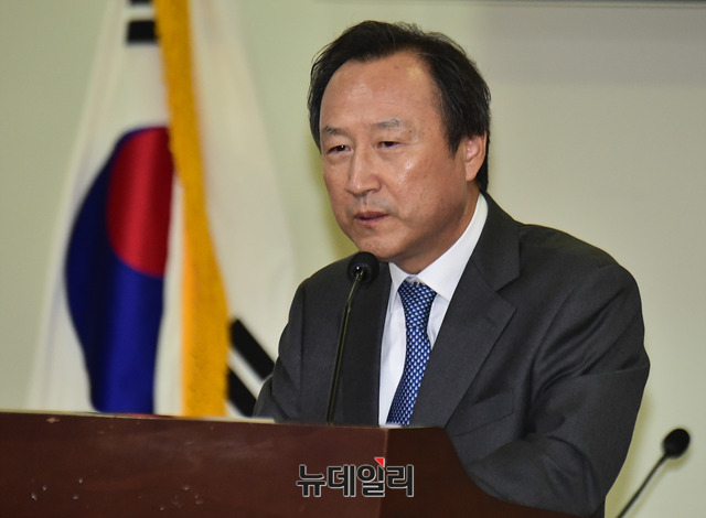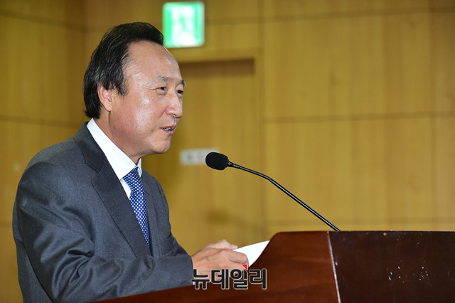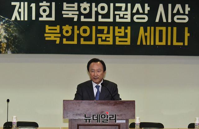 국회인권포럼 대표 홍일표 자유한국당 의원이 4일 오후 국회 의원회관에서 열린 '제1회 북한인권상 시상 및 북한인권법 세미나'에서 인사말을 하고 있다.