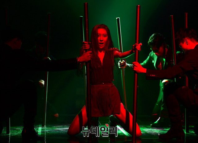 가수 선미가 4일 오후 서울 서대문구 이화여자대학교 삼성홀에서 열린 솔로 EP앨범 'WARNING(워닝)' 쇼케이스에서 타이틀곡 무대를 선보이고 있다.