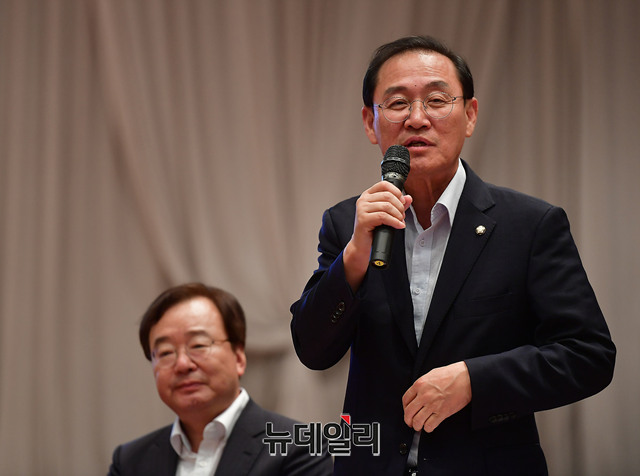 정유섭 자유한국당 의원이 4일 오후 서울 여의도 중소기업중앙회관에서 '2018년 대한민국의 중소기업! 미래는 있는가?'를 주제로 열린 '제1차 중소기업 생존 원탁회의'에서 인사말을 하고 있다.