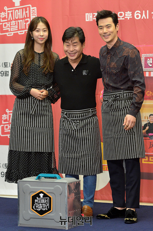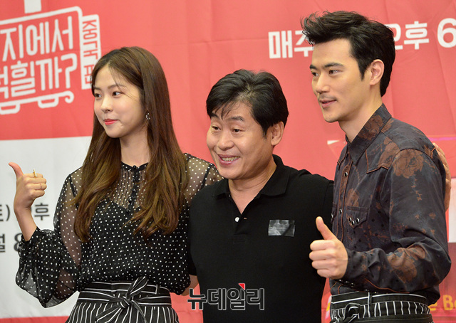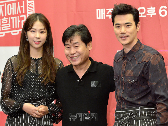 예능 프로그램 '현지에서먹힐까? 중국편' 출연자들(이연복, 김강우, 서은수)이 5일 오후 서울 마포구 스탠포드호텔에서 열린 제작발표회에 참석해 포즈를 취하고 있다.