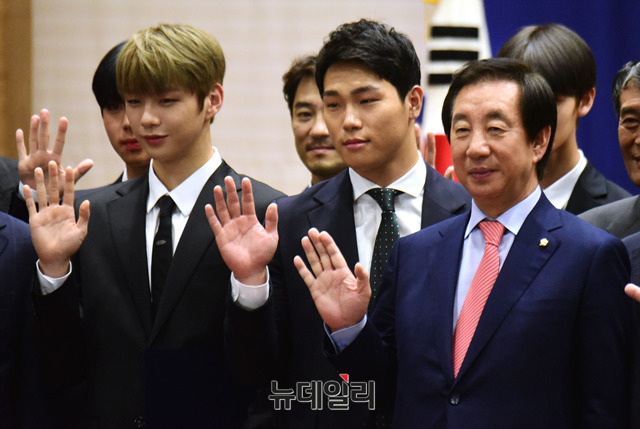 [포토] '강다니엘-윤성빈'과 함께 손흔드는 김성태