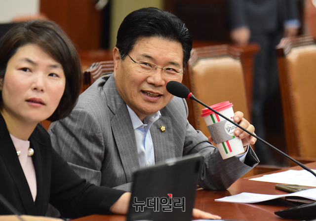 [포토] 교육위 참석한 홍문종 자유한국당 의원