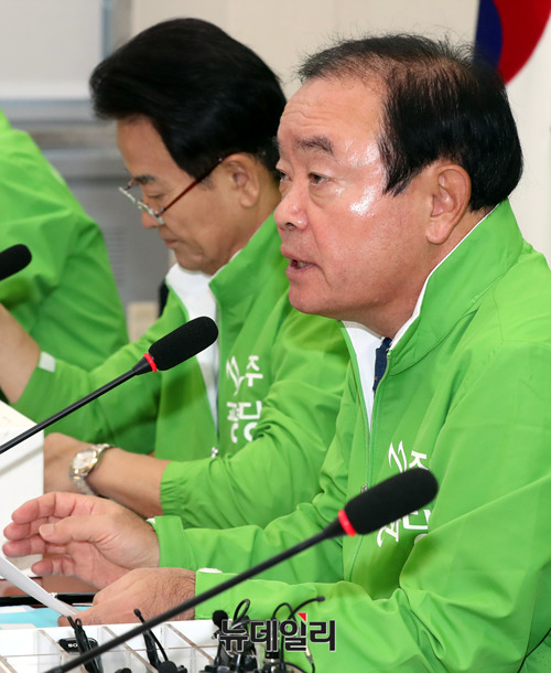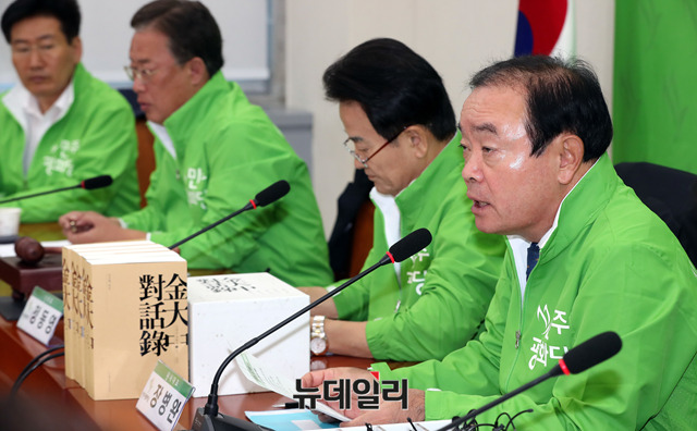 장병완 민주평화당 원내대표가 7일 오전 국회에서 열린 최고위원-국회의원-상임고문 연석회의에서 발언을 하고 있다.