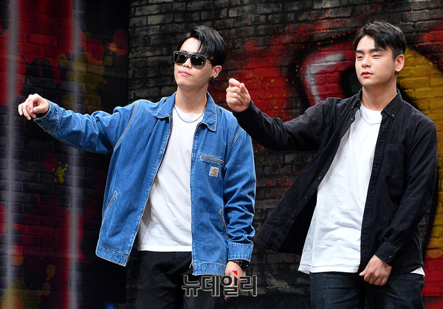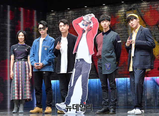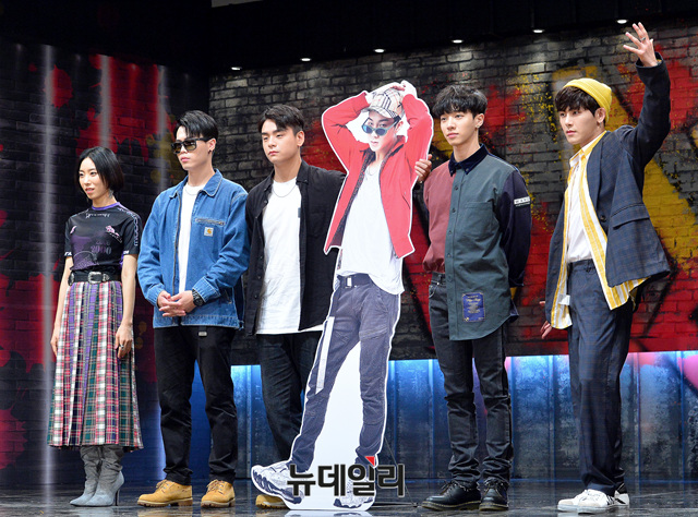 예능프로그램 '댄싱하이'의 출연자들(저스트절크, 리아킴, 이기광, 호야)이 7일 오전 서울 마포구 KBS아트홀에서 열린 제작발표회에 참석해 포즈를 취하고 있다.