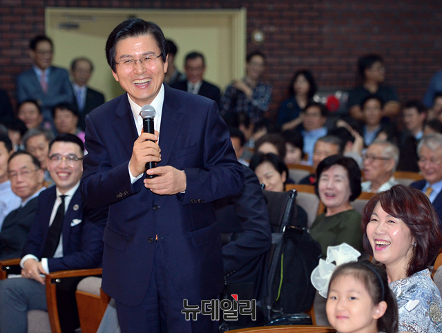 황교안 전 국무총리가 7일 오후 서울 서초구 매헌 윤봉길 의사기념관에서 열린 '황교안의 답(청년을만나다)' 출판기념회에 참석해 질문에 답하고 있다.