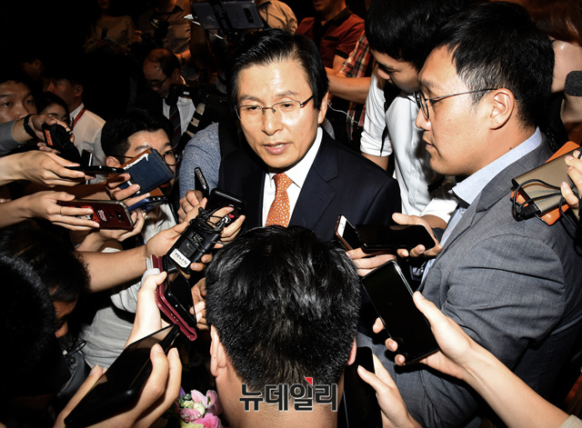 황교안 전 국무총리가 7일 오후 서울 서초구 매헌 윤봉길 의사기념관에서 열린 '황교안의 답(청년을만나다)' 출판기념회 후 취재진의 질문에 답하고 있다.