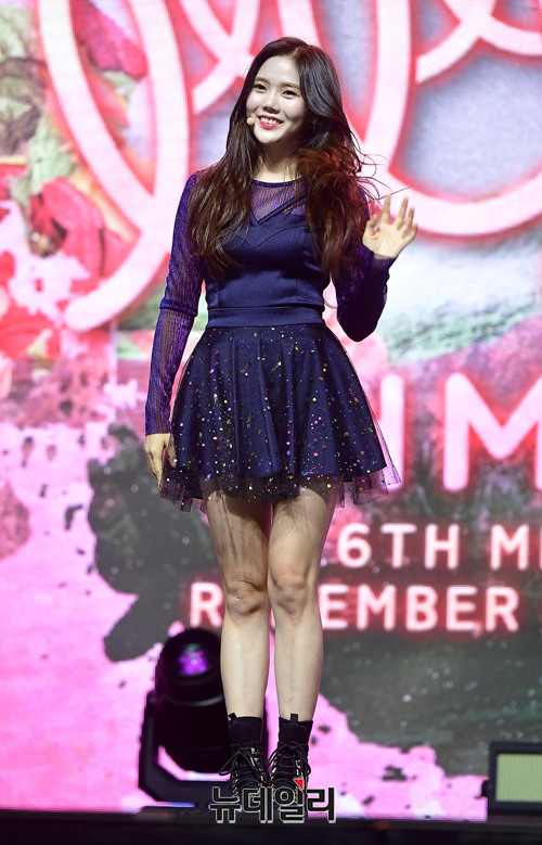 걸그룹 오마이걸 멤버 효정이 10일 오후 서울 광진구 예스24 라이브홀에서 6번째 미니앨범 'Remember ME(리멤버 미)' 쇼케이스에서 포토타임을 갖고 있다.