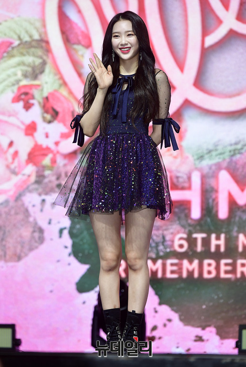 걸그룹 오마이걸 멤버 지호가 10일 오후 서울 광진구 예스24 라이브홀에서 6번째 미니앨범 'Remember ME(리멤버 미)' 쇼케이스에서 포토타임을 갖고 있다.