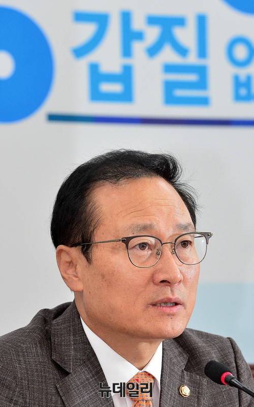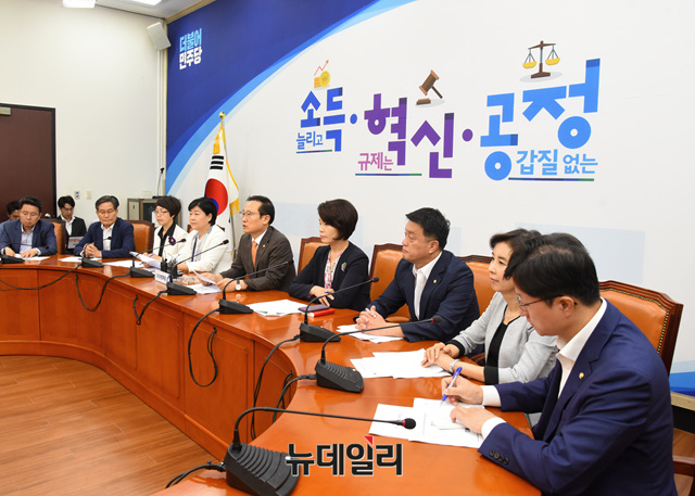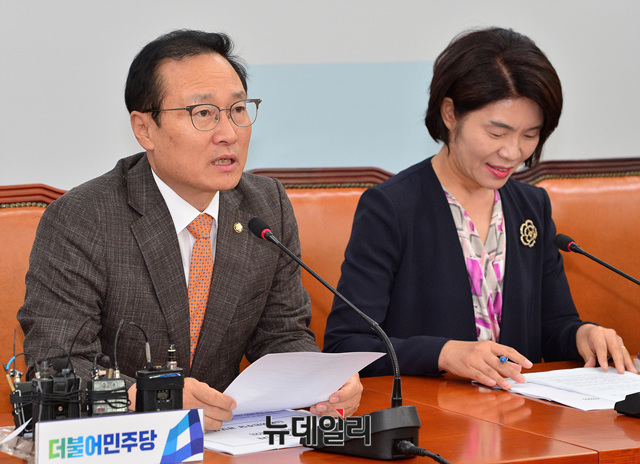 홍영표 더불어민주당 원내대표가 11일 오전 국회에서 열린 원내대책회의에 참석해 모두발언 하고 있다.